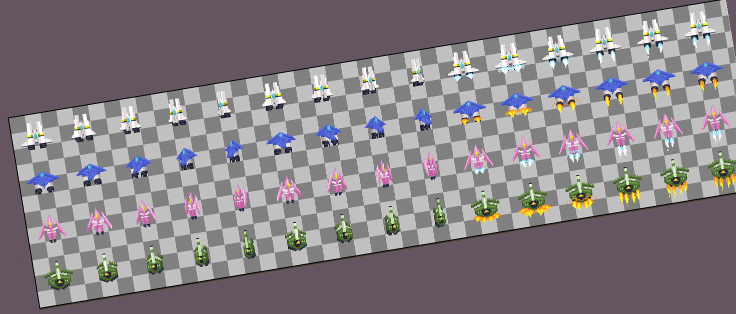 4 Playable Ships (48x48): Move, Idle, dead animations.